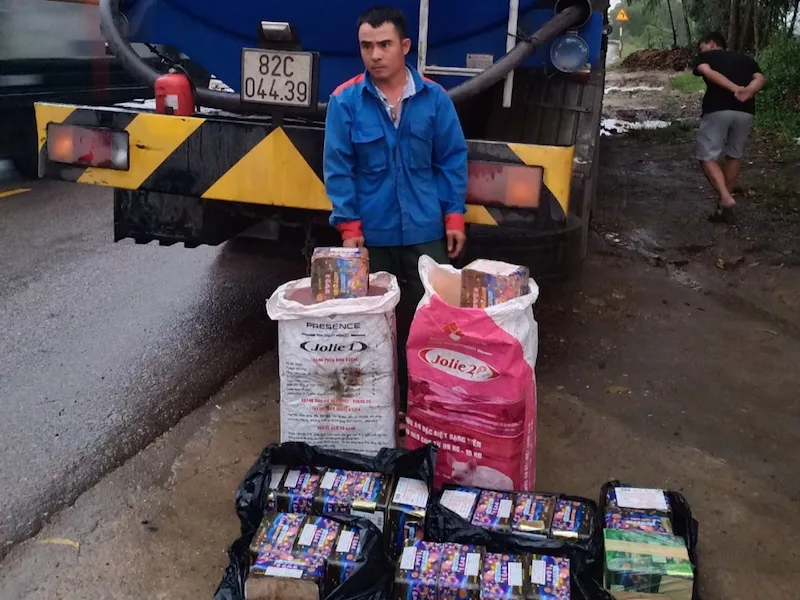 Qua kiểm tra, lực lượng công an phát hiện bên dưới ghế phụ có 45 hộp chứa trong hai bao tải nghi là pháo nổ nên đưa về trụ sở công an huyện để làm rõ. Qua đó, tài xế Định khai nhận 45 hộp này là pháo do nước ngoài sản xuất, mua ở cửa khẩu Bờ Y (Kon Tum) chở về Đại Lộc bán lấy lời.