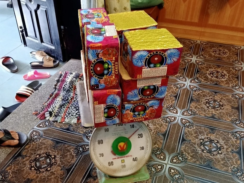 Trước đó, khoảng 9 giờ 30 ngày 31-12-2019, Công an huyện Đại Lộc bất ngờ kiểm tra nhà riêng của bà Lê Thị Thúy Kiều (36 tuổi, ngụ xã Đại Nghĩa) đã phát hiện 10 hộp pháo nổ (490 viên) được cất giấu trong kệ sắt. Số pháo này nặng đến 15 kg.