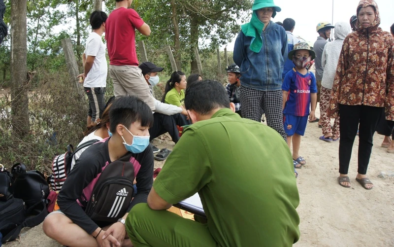 Công an ghi tên và ghi lời khai những người đi trên xe.