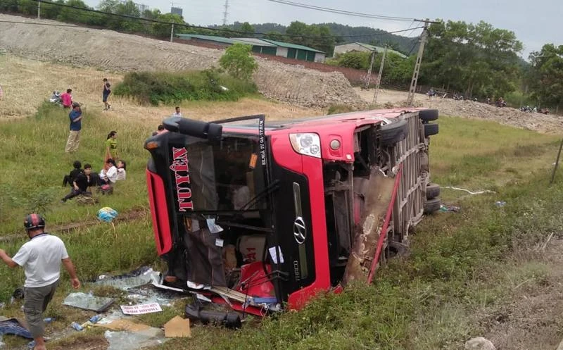 Như đã đưa tin, sáng 27-6, xe khách mang BKS 36B-005.67 do anh Khoa điều khiển chạy hướng Hà Nội-TP.HCM, khi đi trên quốc lộ 1A tránh TP Vinh (thuộc địa phận xã Hưng Thịnh, huyện Hưng Nguyên) thì bỗng lao xuống ruộng và lật.
