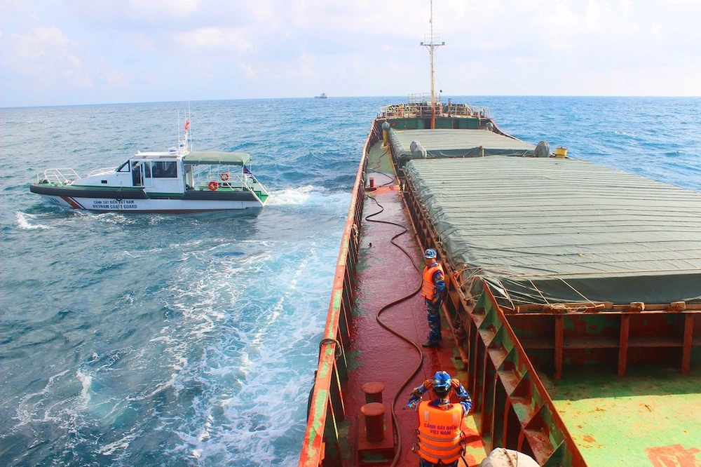Lực lượng chức năng kiểm tra tàu Thuận Phát 88. Ảnh: CTV