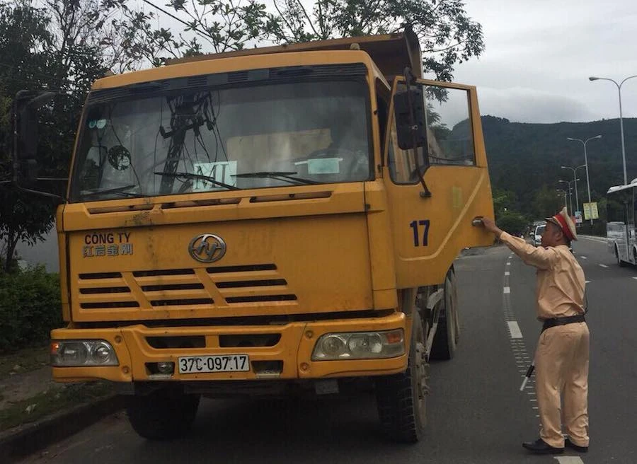 Trưa 9-3, các chiến sĩ trong tổ tuần tra (thuộc Trạm CSGT Cửa Ô Hòa Hiệp, Phòng CSGT Công an Đà Nẵng) phát hiện xe ben 37C-097.17 chạy trên đường Nguyễn Văn Cừ (phường Hòa Hiệp Bắc, quận Liên Chiểu) có dấu hiệu chở quá tải nên ra hiệu dừng xe.