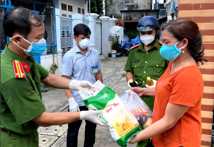 “Không ít hộ dân trong khu vực phong tỏa gặp khó khăn về lương thực, rất cần sự hỗ trợ từ nhiều nguồn. Do đó, bên cạnh sự kêu gọi các nhà hảo tâm, Công an phường Hiệp Phú còn trích tiền lương mua gạo, trứng, nước tương… gửi bà con. Công an phường Hiệp Phú còn hỗ trợ gạo cho bếp ăn 0 đồng tại Bệnh viện Lê Văn Thịnh” – Trung tá Nguyễn Mai Chức, Trưởng Công an phường Hiệp Phú, chia sẻ.