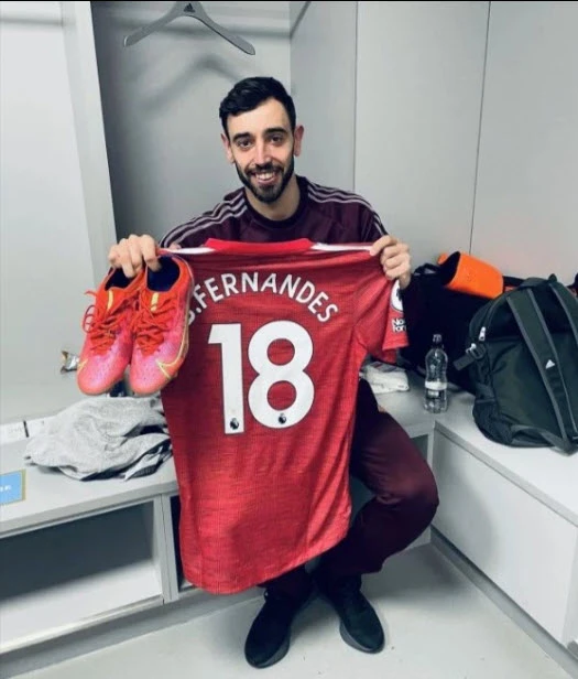 Bruno bán đấu giá chiếc áo số 18 và đôi giày anh ra sân trận gặp Man City. ẢNH: GoFundMe