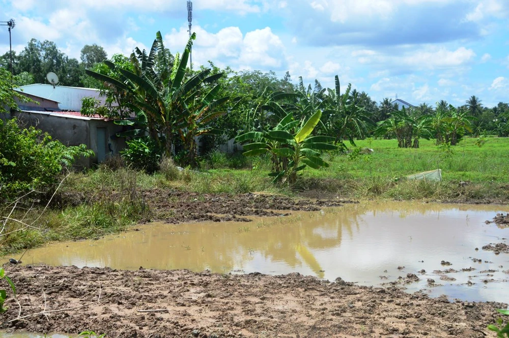 Khu đất có hố nước nơi hai cháu bé đuối nước. Ảnh: CAO XUÂN