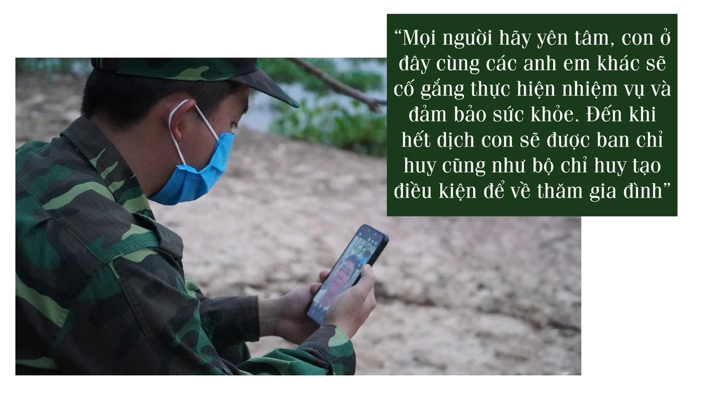 “Mình muốn nhắn nhũ đến ông bà, hiện tại ông bà sức khỏe không được tốt nên cố gắng giữ gìn sức khỏe, tiếp theo là đến cha mẹ và gia đình bạn gái thật nhiều sức khỏe. Mọi người hãy yên tâm, con ở đây cùng các anh em khác sẽ cố gắng thực hiện nhiệm vụ và đảm bảo sức khỏe. Đến khi hết dịch con sẽ được ban chỉ huy cũng như bộ chỉ huy tạo điều kiện để về thăm gia đình” - Việt cười mỉm nhờ chúng tôi gửi lời nhắn nhủ đến người thân ở hậu phương.