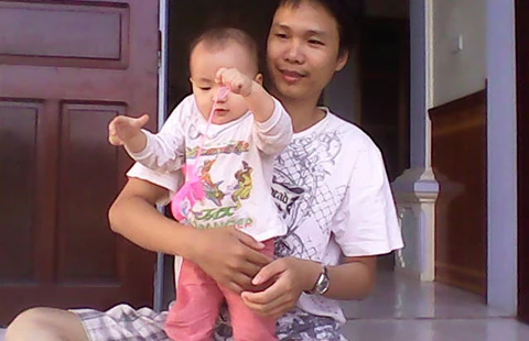 Anh Đỗ Đình Giáp cùng vợ (trên), con (dưới). Ảnh gia đình cung cấp