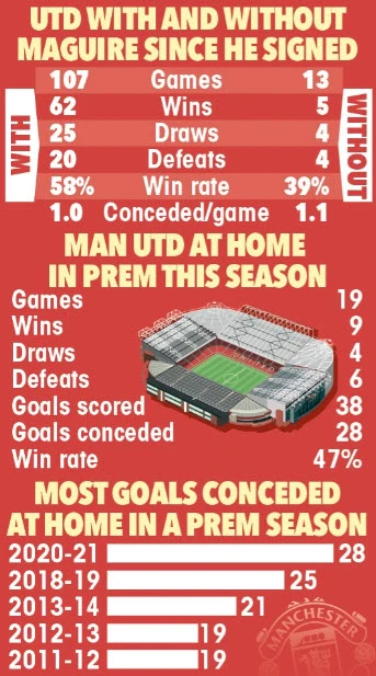 Thông số của MU có và không có Maguire trong đội hình. ẢNH: THE SUN