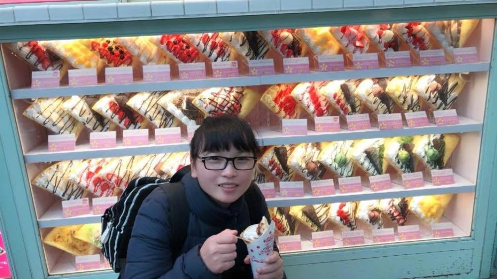 Nữ du học sinh cùng các bạn của mình bên xứ sở hoa Anh Đào.