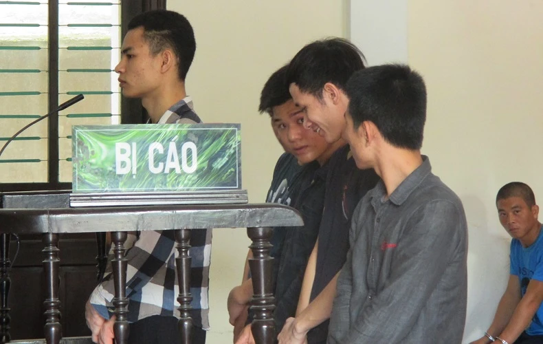 Phan Đức Xuân (đứng trước) cùng các bị cáo trước vành móng ngựa