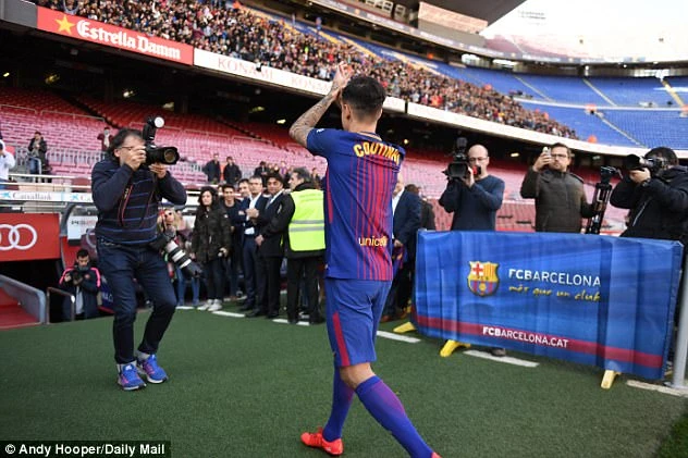 Coutinho ra mắt 7.000 CĐV Barcelona trên sân vận động Nou Camp vào sáng nay (9-1).