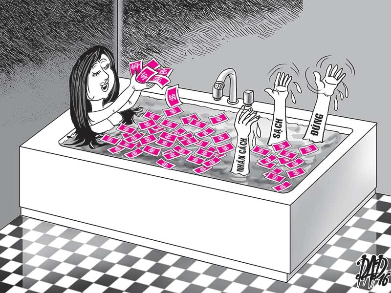 Những ai thật sự giàu, theo nghĩa đen, thật sự có rất nhiều tiền, nhất là tiền làm ra bằng chính sức lao động chân chính thì không hành xử kiểu đem tiền ra tắm. Những ai có chút ít nhận thức sơ đẳng đều biết tiền không vệ sinh vì qua tay nhiều người dùng. Những ai có mắt để đọc, có tai để nghe đều biết giới tội phạm khi thu cả núi tiền đều coi việc “rửa tiền” là sống còn. Tiền phi pháp, “tiền đen” nên người ta cần “rửa tiền” cho sạch. Soi cả nghĩa đen lẫn nghĩa bóng thì việc tạo scandal câu like của cô ả chứng tỏ một sự ngốc nghếch sơ đẳng. Không ai đem tiền ra bảo là tắm cho đẹp da! Chìm trong cái bể tiền ấy kể ra cũng dễ hiểu khi người ta không còn biết phân biệt bẩn sạch, đúng sai ở đời.