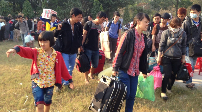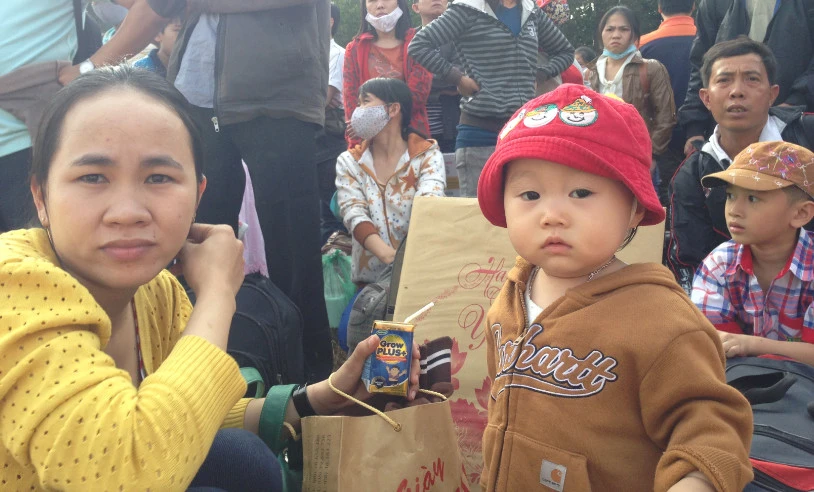 Nhiều gia đình công nhân may mắn có vé để cả gia đình cùng về tết.