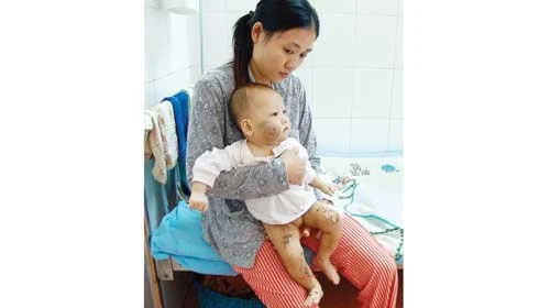 Nguyễn Thị Xuân Lan và bé Như Ý với những vết thương trên người
