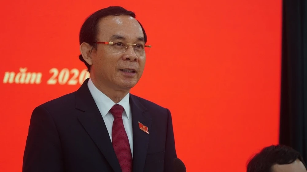 Ông Nguyễn Văn Nên, Bí thư Thành ủy TP.HCM trả lời báo chí. Ảnh: QUỐC VŨ
