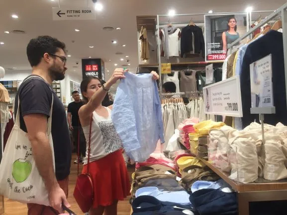 Khách du lịch mua sắm tại cửa hàng thời trang Uniqlo TP.HCM. Ảnh: T.UYÊN