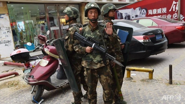 Hiện trường xảy ra vụ tấn công tại Tân Cương, Trung Quốc (Ảnh: AFP)