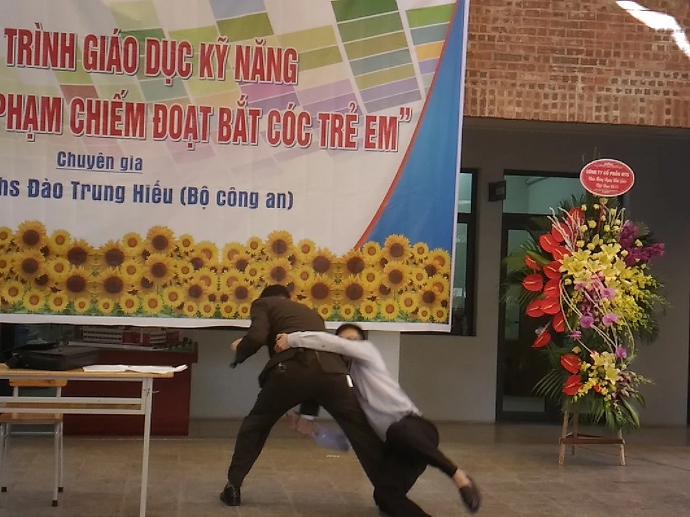 Trong khi đó, Trung tá Đào Trung Hiếu cho biết loại tội phạm buôn người thường nhắm đến trường học, vì vậy việc trang bị kỹ năng là rất cần thiết để học sinh ứng phó khôn khéo khi gặp tình huống xấu. Hơn bao giờ hết, việc dạy cho trẻ những kỹ năng tự vệ là rất cần thiết để các em có thể ứng phó với những tình huống nguy hiểm khi bị bọn buôn người bắt cóc.
