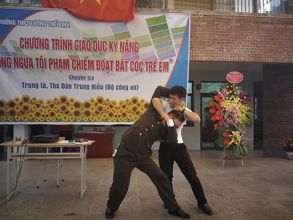Bà Văn Quỳnh Giao, Phó Hiệu trưởng Trường THPT Lương Thế Vinh, cho hay trường phối hợp với lực lượng công an tổ chức hai buổi để truyền đạt đến các học sinh những kỹ năng cơ bản nhất khi gặp phải kẻ xấu. Buổi thứ nhất là dành cho khối học sinh THPT, buổi thứ hai dành cho khối THCS và tiểu học.