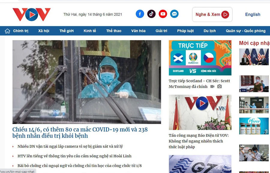 Ngày 14-6, Cục An ninh mạng và phòng, chống tội phạm sử dụng công nghệ cao (A05) Bộ Công an cho biết đã nhận được công văn của báo điện tử VOV về việc trang web và fanpage của báo bị tấn công bằng từ chối dịch vụ (DDoS), khiến băng thông truy cập quá tải.