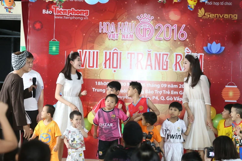 Các người đẹp đã dành tặng các bé bánh Trung thu, lồng đèn và 20 triệu đồng như một món quà Trung thu ý nghĩa.