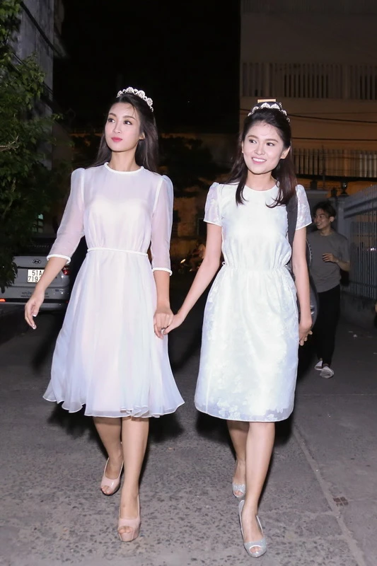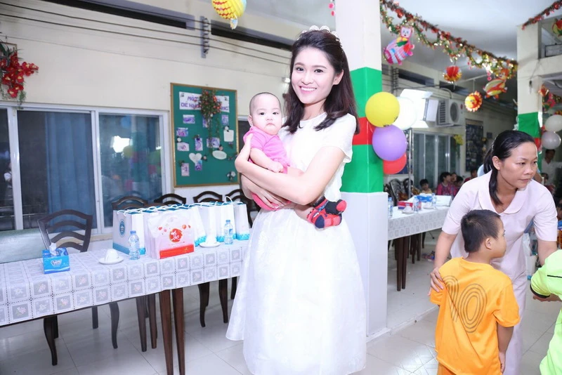 Hai người đẹp đã chọn những chiếc đầm trắng nhẹ nhàng như hai chị Hằng xinh đẹp xuống chơi với các em tại Trung tâm Nuôi dưỡng bảo trợ trẻ em Gò Vấp.