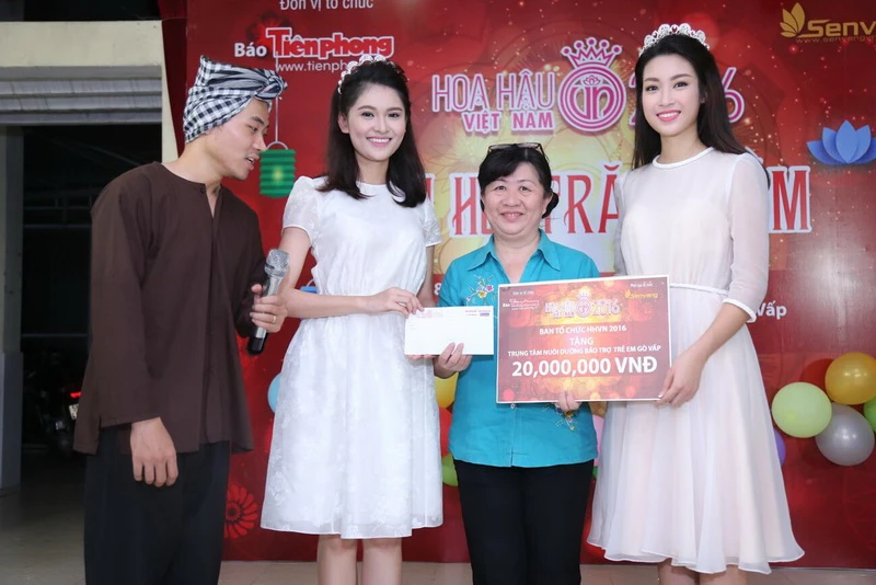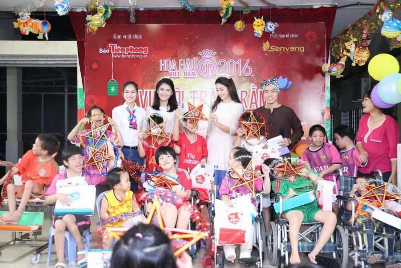 Tân hoa hậu cho biết cảm thấy hạnh phúc bởi đã góp phần mang đến những niềm vui cho các bé. Tham gia hoạt động này còn có sự góp mặt của Hoàng Thị Phương Thảo - người đẹp trong tốp 30 của vòng chung kết Hoa hậu Việt Nam 2016.