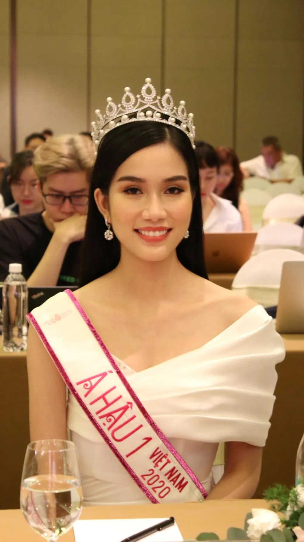 Tân Hoa hậu Việt Nam 2020 Đỗ Thị Hà tại buổi học báo.