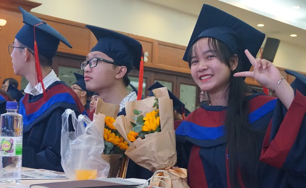 Tân thủ khoa vui mừng khi nhận được học bổng từ chương trình. Ảnh: NGUYỄN QUYÊN