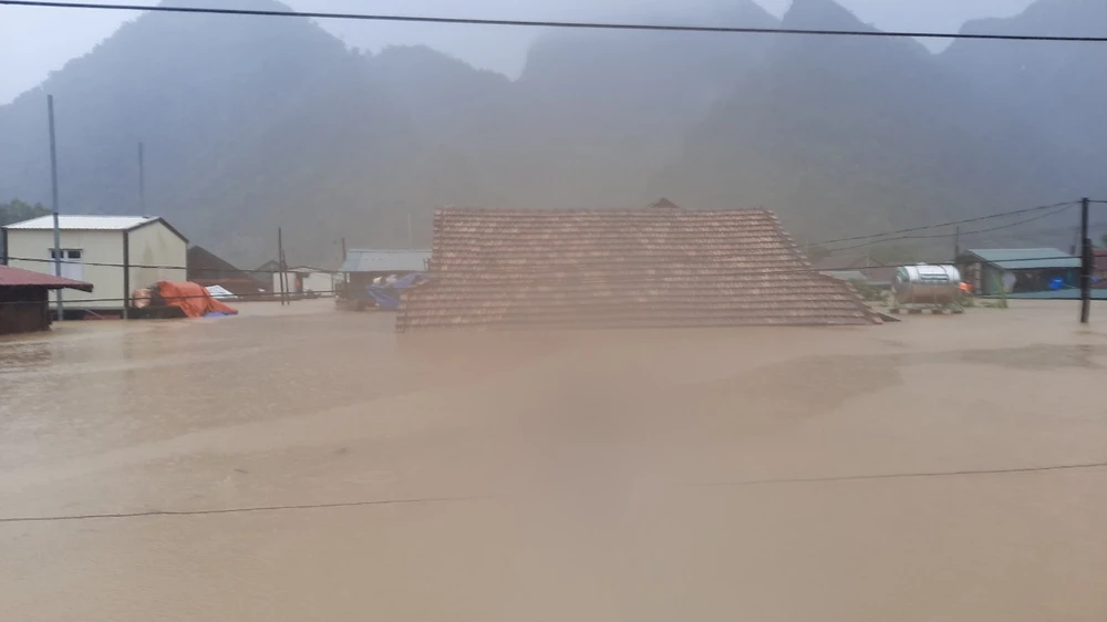 Tối qua, toàn bộ nhà dân nơi đây đã bị ngập lên mái. Đến sáng nay thì nước đã san phẳng trắng xóa gần hết nhà dân.