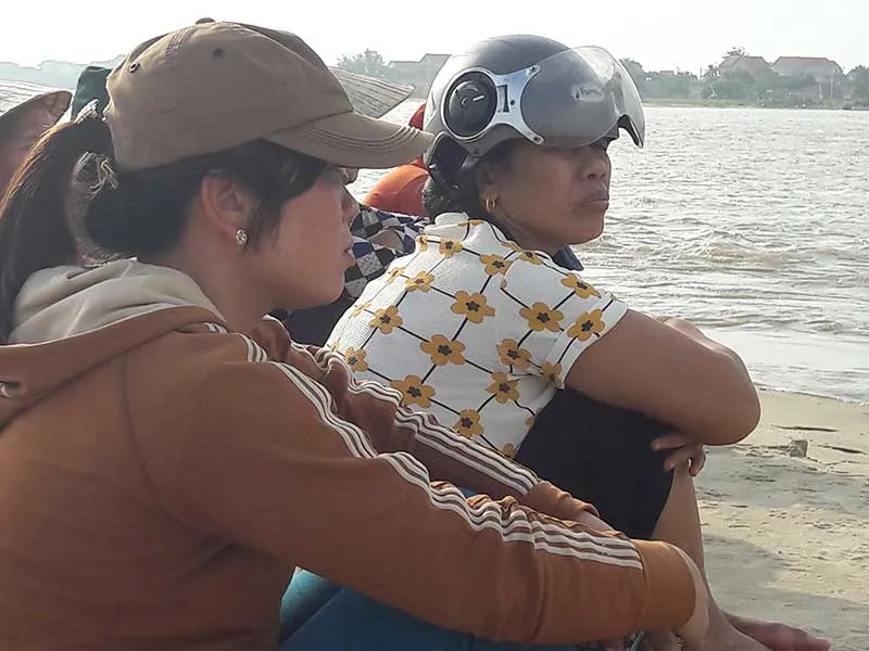 Phía trên bờ, người làng Cảnh Dương đổ ra phía cửa biển để ngóng chờ đội cứu nạn. Khuôn mặt gầy guộc, hốc hác của những người mẹ, người vợ làng biển hằn in nỗi lo lắng về cuộc sống trong những tháng ngày sắp tới. Đau đớn nhìn con tàu QB 33876 TS chìm nghỉm trong dòng nước xiết, chị Đậu Thị Hoa chia sẻ: Bao năm đi biển dành dụm được ít tiền, cuối năm 2014 gia đình chị mới dám đánh liều vay thêm tiền ngân hàng để mua lại con tàu với giá 500 triệu đồng. Vừa đi được vài chuyến, chưa kịp hoàn vốn thì xảy ra sự cố Formosa xả thải gây ô nhiễm môi trường biển.