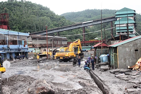 Công tác khắc phục hậu quả sau lũ đang được triển khai khẩn trương tại mỏ Mông Dương với hy vọng sớm đưa công nhân trở lại làm việc từ 3-5 tháng tới. Ảnh: Đ. TRUNG