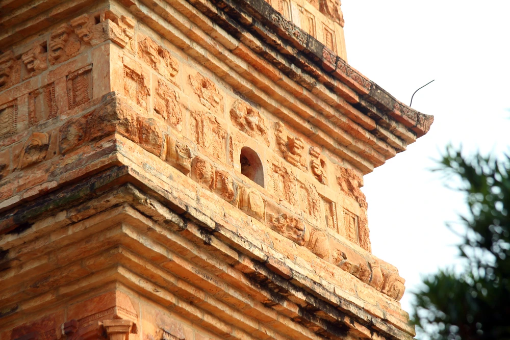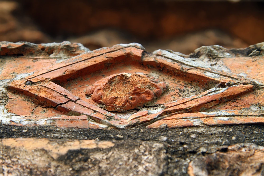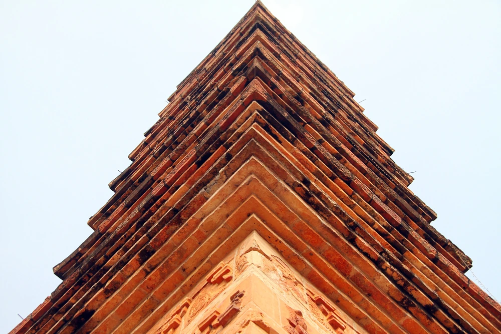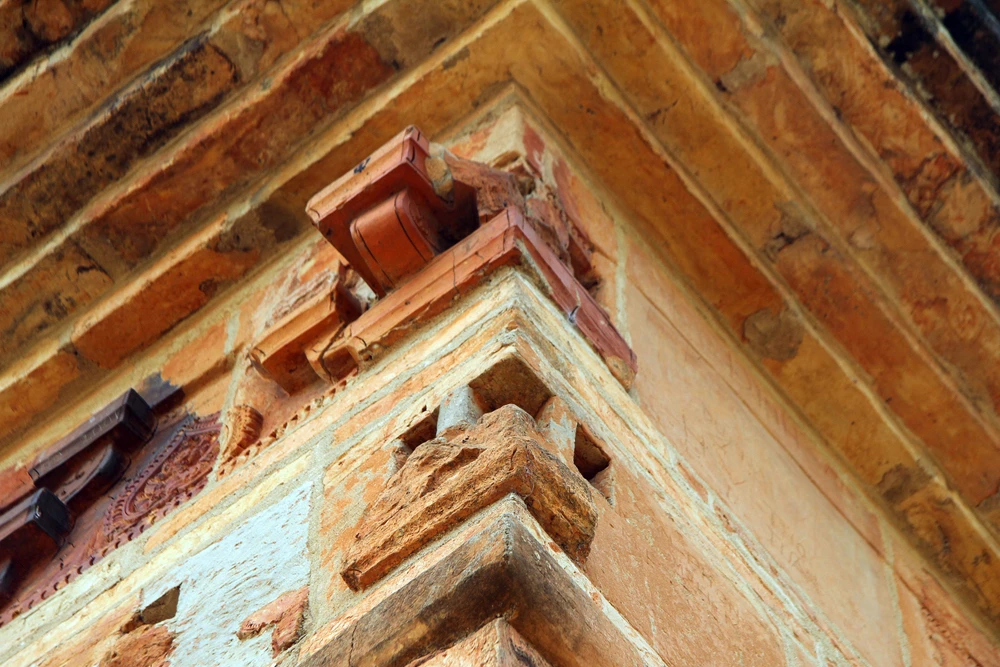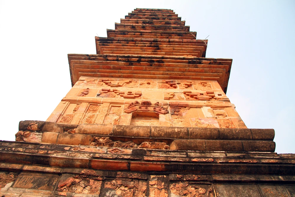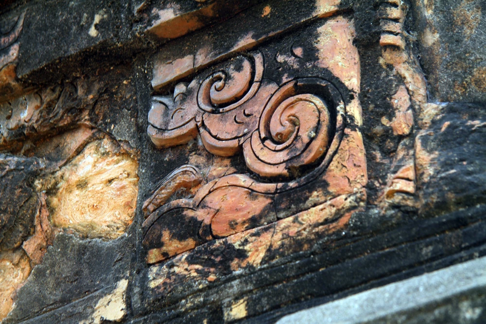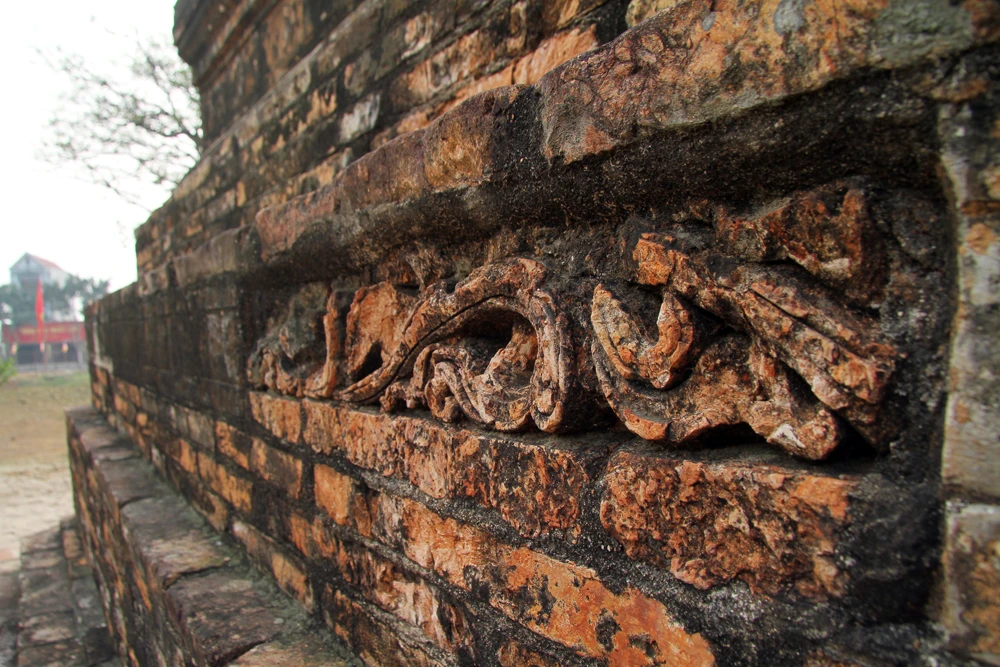Đã gần ngàn năm nay, nhiều viên gạch xây tháp vẫn còn giữ nguyên được màu đỏ son mà không bị rêu mốc.