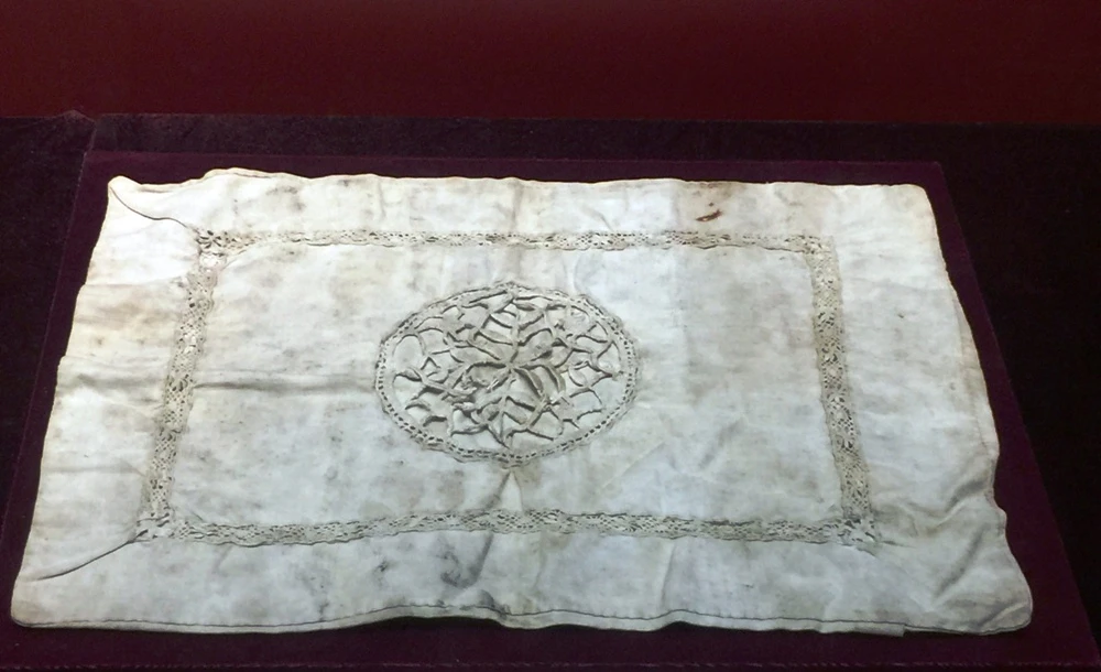Áo gối được đồng chí Nguyễn Thị Minh Khai làm từ áo tù tặng mẹ.