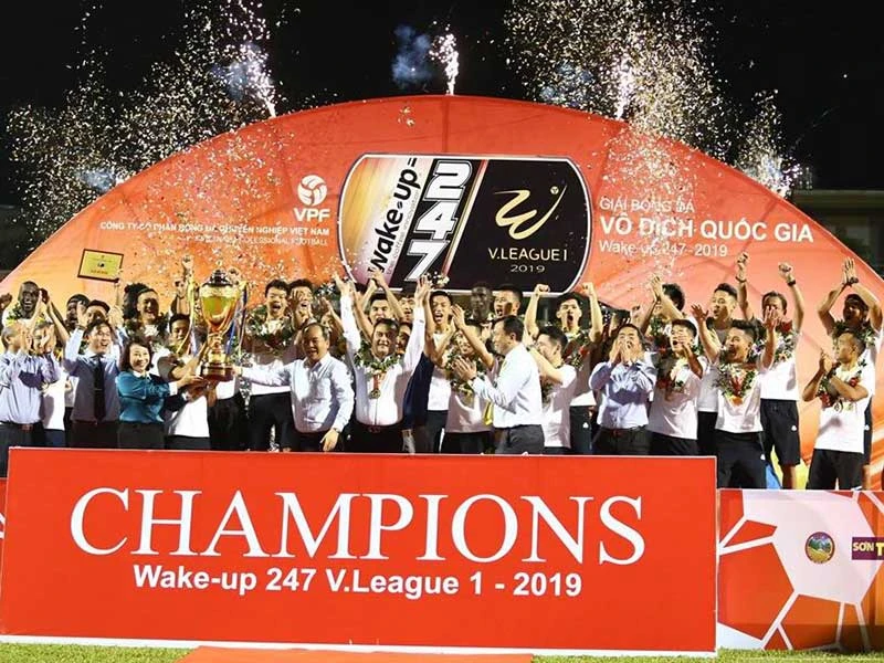 Hà Nội đăng quang sau trận thua Than Quảng Ninh 2-4 trên sân Cửa Ông. Ảnh: CTV