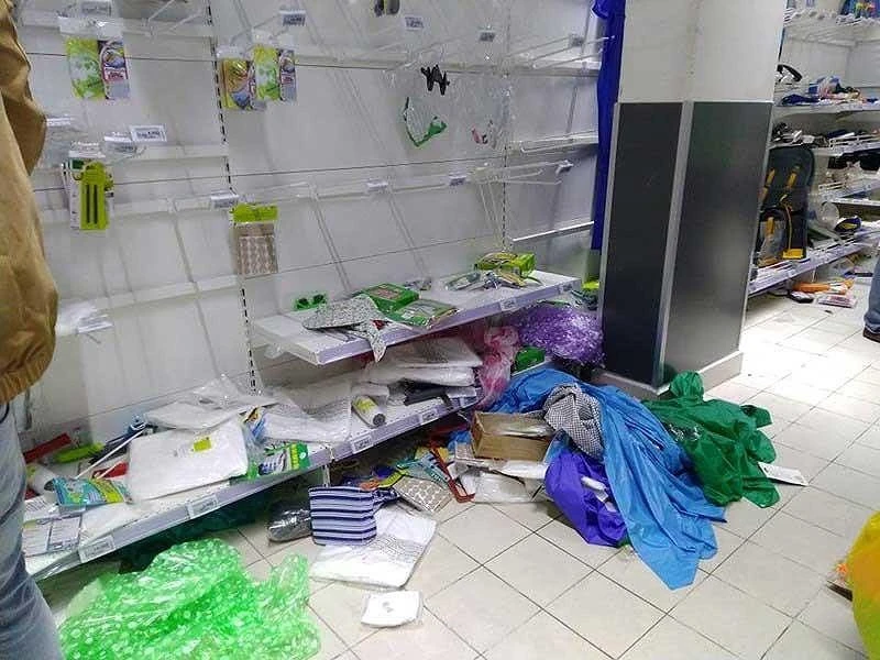 Các kệ hàng trong Siêu thị Auchan bị người mua 'tàn phá'.