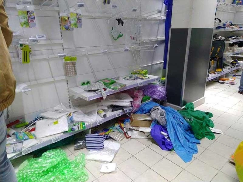Khắp các kệ hàng hóa bị bới tung, rơi lỏng chỏng xuống đất. Những cái chén bị bể làm đôi, nón bảo hiểm bung vành nón, cái nồi không thấy nắp. Bánh kẹo, snack bị bóc ra… nếm thử, những chai nước lọc ai đó uống đi phân nửa rồi để lại nguyên trên giá. Tại quầy sữa tắm, dầu gội đầu bị xới tung, có chai bật nắp chảy nước ra khắp sàn nhà. Có lọ tương ớt bị rơi xuống sàn vỡ toang...