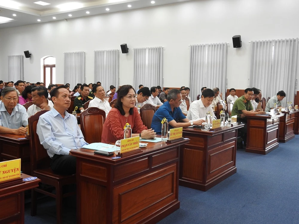 Nhiều lãnh đạo tỉnh Bạc Liêu cùng tham dự Hội nghị tiếp xúc cử tri chiều 9-4. Ảnh: TRẦN VŨ