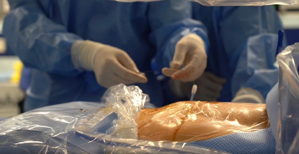 Các bác sĩ thực hiện can thiệp nhẹ nhàng với 1 vết rạch da 3mm để đưa ống nội soi và đầu tán laser.