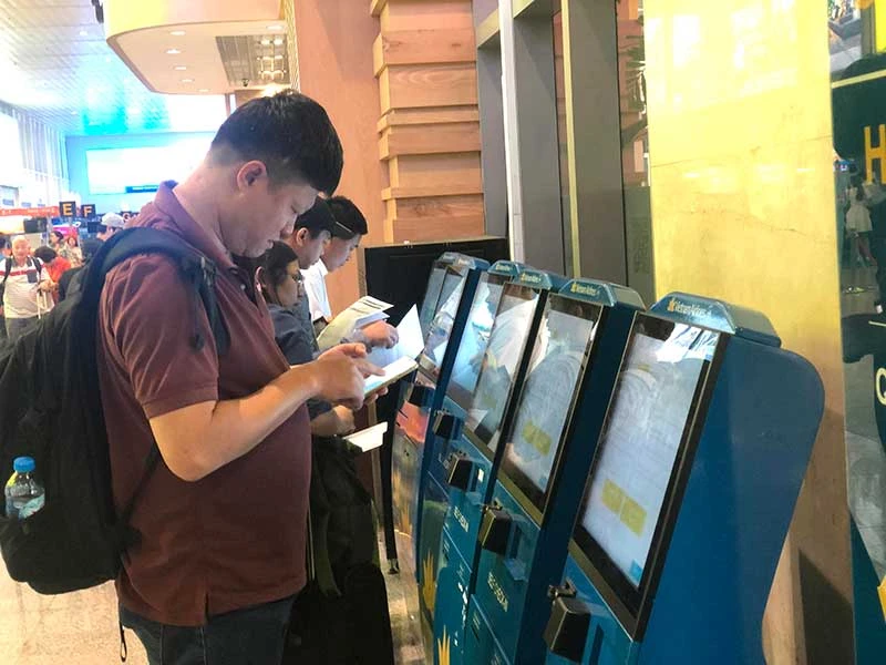 Ngoài quầy thủ tục lên máy bay truyền thống, các hãng hàng không khuyến nghị hành khách check in điện tử để giảm áp lực dịp tết. Ảnh: P.ĐIỀN