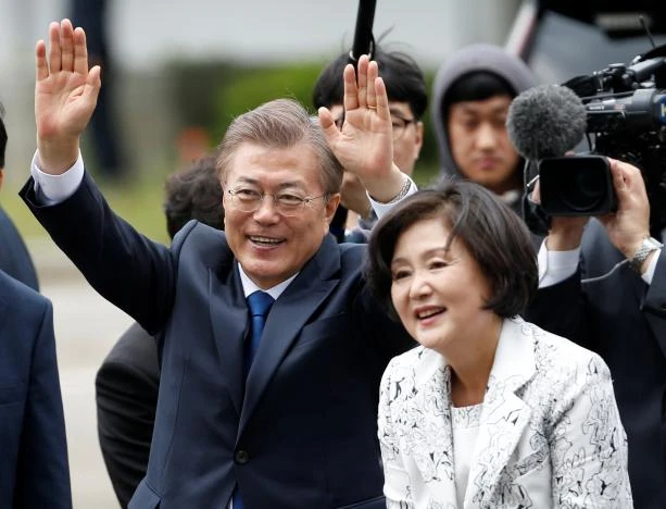 Tân Tổng thống Hàn Quốc Moon Jae-in và phu nhân Kim Jeong-suk. Ảnh: REUTERS