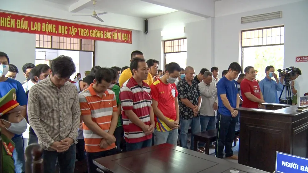 Phiên xử sơ thẩm vụ tổ chức đánh bạc, đánh bạc xảy ra tại TX Long Mỹ. Ảnh: BT