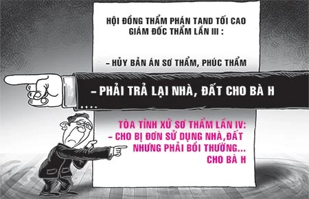 | Gỡ vướng trước mắt Về nguyên tắc hiến định thì dù ở cấp tòa nào cũng đều phải xét xử độc lập. Nhưng trong trường hợp tòa cấp dưới có sai sót đã được Hội đồng Thẩm phán TAND Tối cao chỉ ra mà vẫn cứ “cố đấm ăn xôi” thì phải tính. Chẳng hạn trong vụ này, chánh án TAND Tối cao có thể trực tiếp hoặc ủy quyền cho người khác tổ chức một buổi thảo luận ngay tại tòa cấp sơ thẩm với sự tham gia của các đương sự và toàn bộ những người tiến hành tố tụng của các cấp tòa sơ, phúc thẩm. Tại buổi thảo luận, TAND Tối cao để cho các đương sự trình bày hết (thậm chí đi thực tế), trên cơ sở đó phân tích, đánh giá xem những bản án đã xử của các cấp nhận định nào đúng, nhận định nào sai. Cuối cùng, đại diện TAND Tối cao sẽ đưa ra định hướng chung thống nhất trong buổi gặp. Đương nhiên buổi thảo luận không nằm trong quy trình tố tụng và không ghi vào bản án nhưng nó cần thiết để tháo gỡ một vụ án có nhiều quan điểm khác nhau. Đây là cách làm khá tốn công sức, thời gian của nhiều cán bộ tố tụng nhưng nó mang lại kết quả là tìm ra hướng gỡ cho vụ án. Làm thế này vừa ổn về pháp lý lẫn thực tế xét xử vừa có tác dụng thống nhất về tư tưởng. Về lâu dài, chúng ta nên quy định theo cơ chế án lệ để thống nhất quan điểm trong những tình huống quy định pháp luật còn thiếu, chưa đầy đủ. Khi đó một số quyết định giám đốc thẩm đã được chọn lọc sẽ thành đường lối xét xử buộc tòa cấp dưới tuân theo. Thẩm phán PHẠM CÔNG HÙNG, Tòa Phúc thẩm TAND |