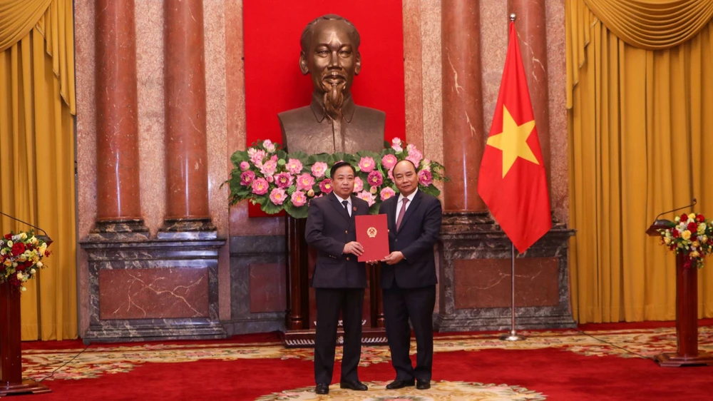 Chủ tịch nước Nguyễn Xuân Phúc đã chủ trì, trao quyết định bổ nhiệm Phó Chánh án TAND Tối cao đối với ông Phạm Quốc Hưng. Ảnh: tapchitoaan.vn