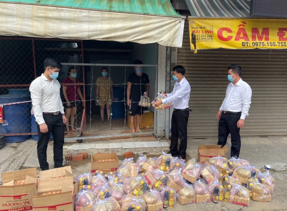 TAND TP Dĩ An gửi quà tặng cho người dân có hoàn cảnh khó khăn do ảnh hưởng của dịch Covidd-19. Ảnhh: NVCC