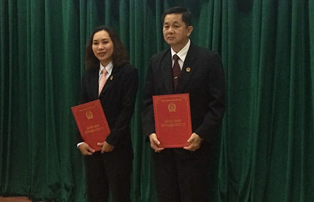 Chánh và phó văn phòng mới nhận quyết định bổ nhiệm. Ảnh: HY