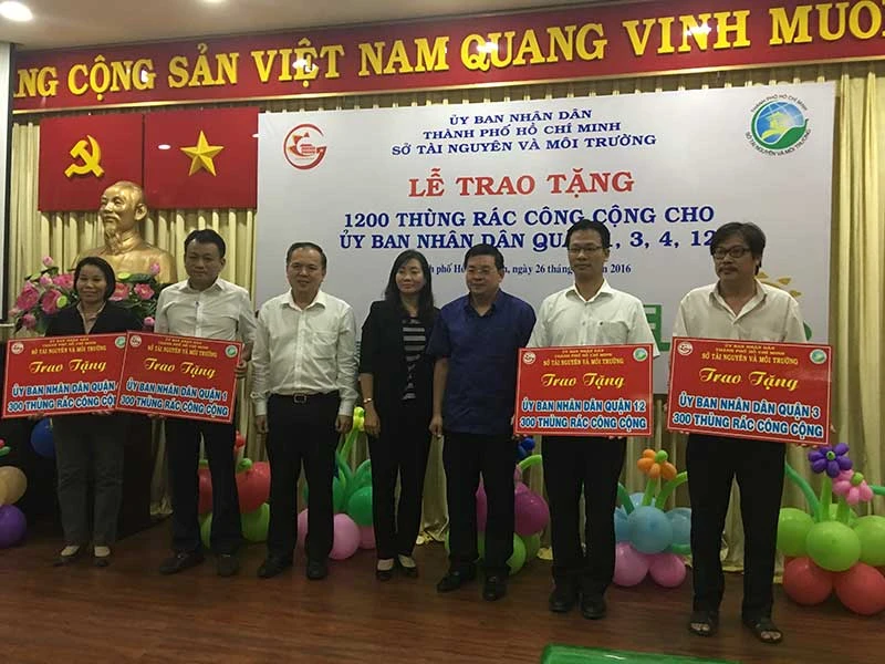 Công ty TNHH MTV Môi trường đô thị TP.HCM phối hợp với Sở TN&MT vừa tổ chức trao tặng 1.200 thùng rác công cộng dung tích 95 lít (tổng giá trị 600 triệu đồng) cho bốn quận 1, 3, 4 và 12. Đây cũng là đợt đầu tiên công ty triển khai chương trình hỗ trợ lắp đặt thùng rác công cộng, một nhu cầu hết sức cần thiết và cấp bách trên địa bàn TP.