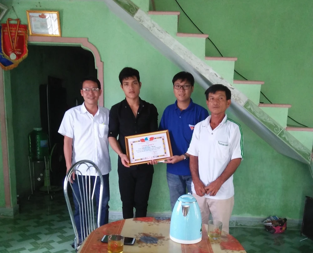Huyện đoàn và Hội Liên hiệp Thanh niên huyện Duy Xuyên tặng giấy khen cho anh Bồng. Ảnh: PT