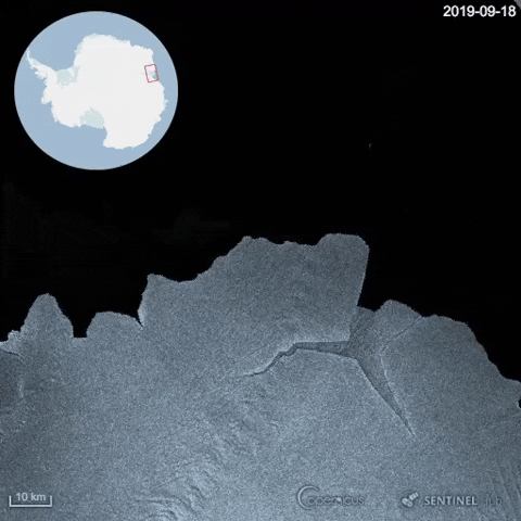 Chương trình Quan sát Trái Đất của Liên minh châu Âu Copernicus, ngày 1-10 công bố, một tảng băng khổng lồ có kích thước tương đương khu vực đô thị Sydney, đã tách ra khỏi thềm băng Nam Cực.