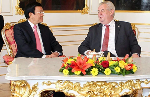 Tổng thống Cộng hòa Czech Milos Zeman tiếp Chủ tịch nước Trương Tấn Sang tại phủ tổng thống. Ảnh: TTXVN